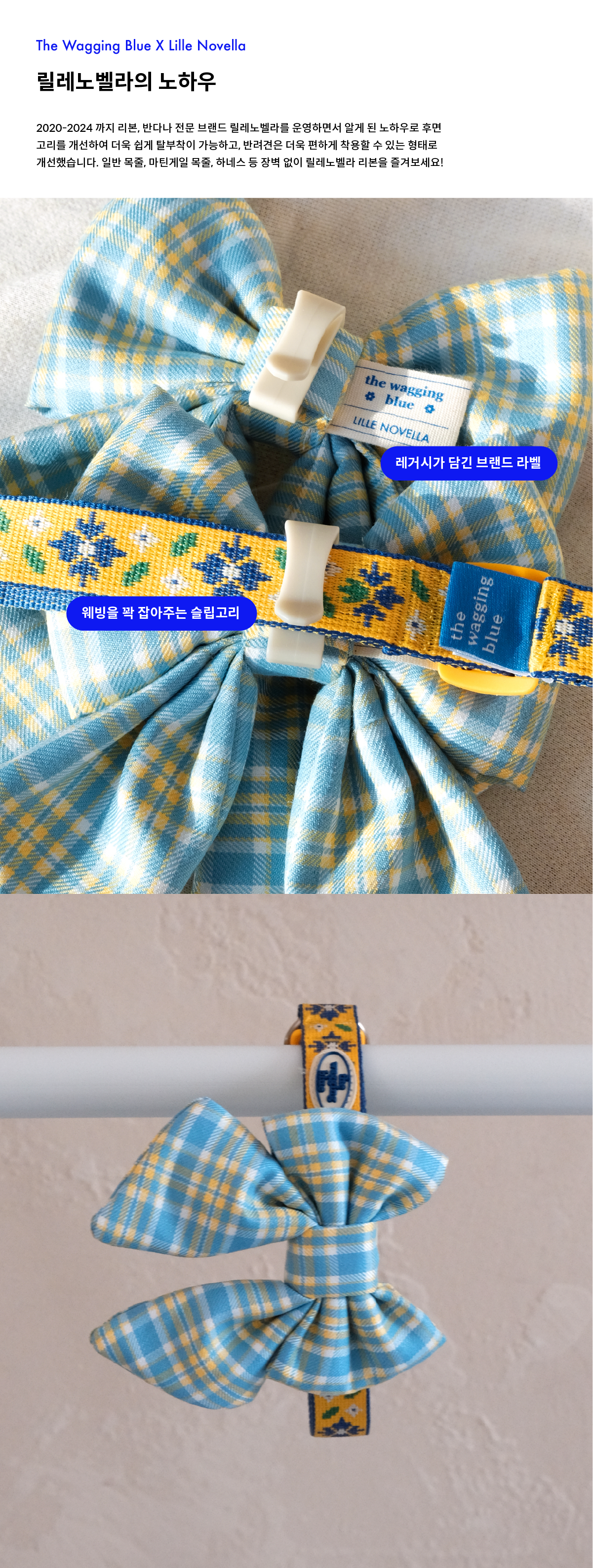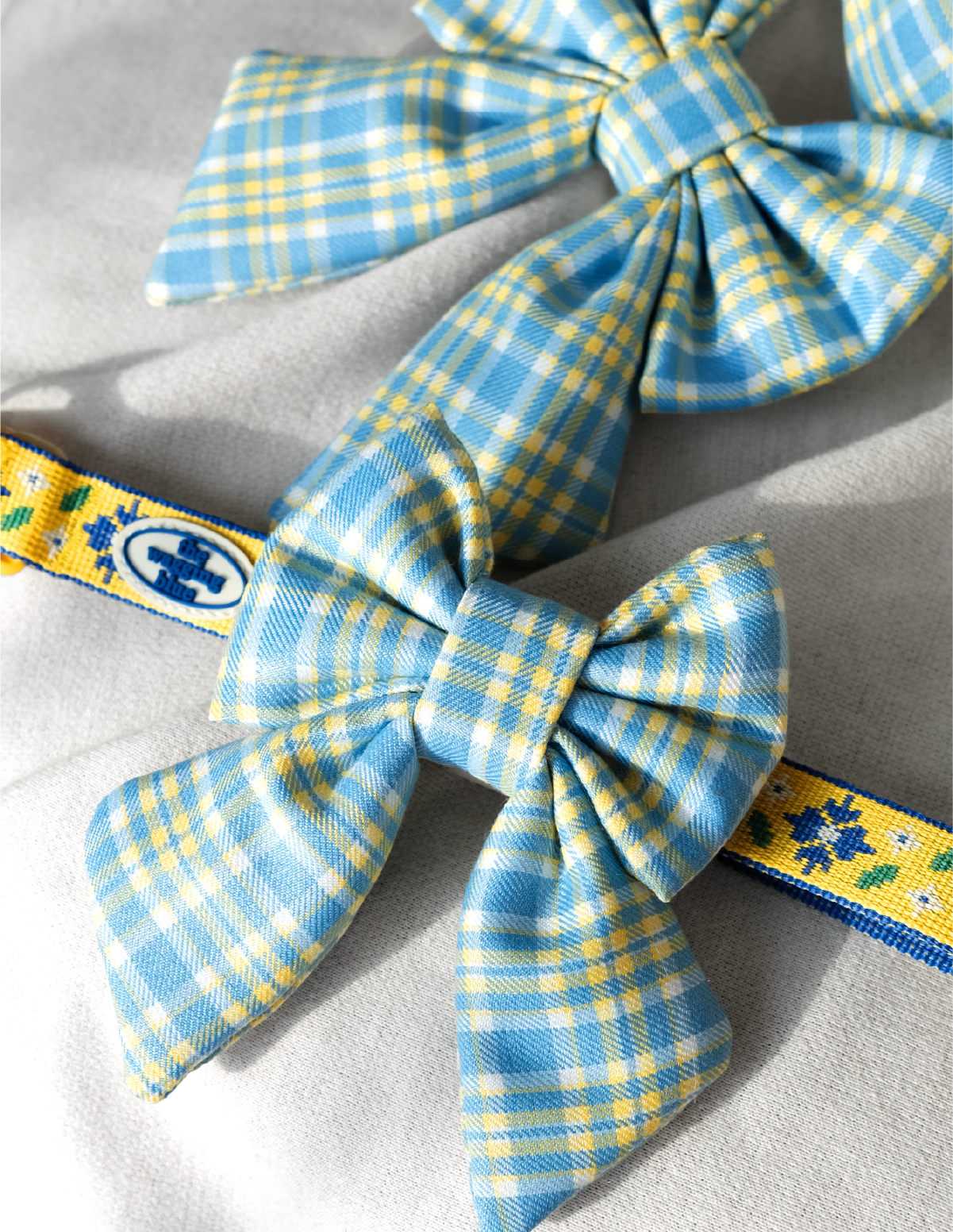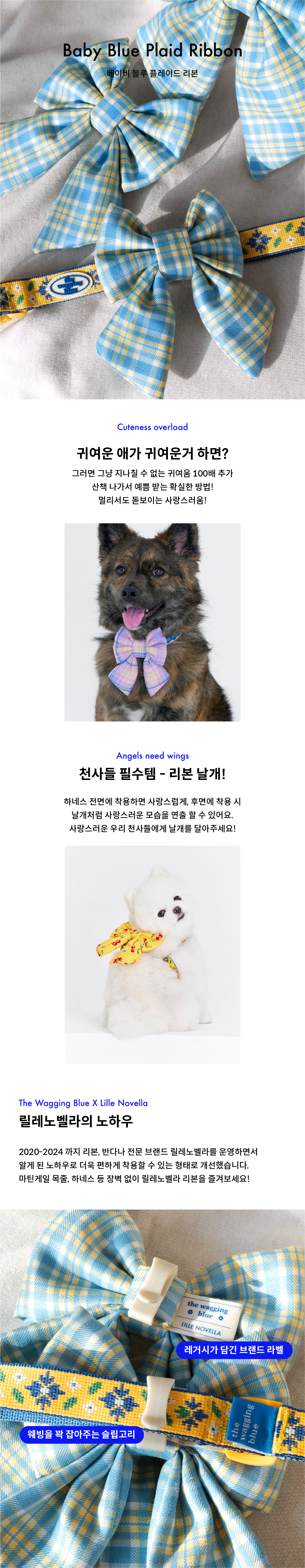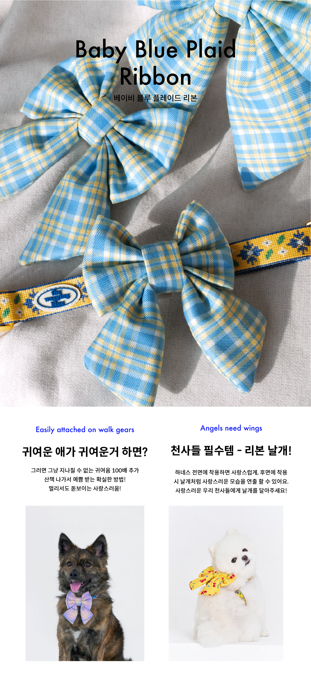 산뜻한 노랑색과 하늘색 배색의 귀여운 블루 플레이드 리본