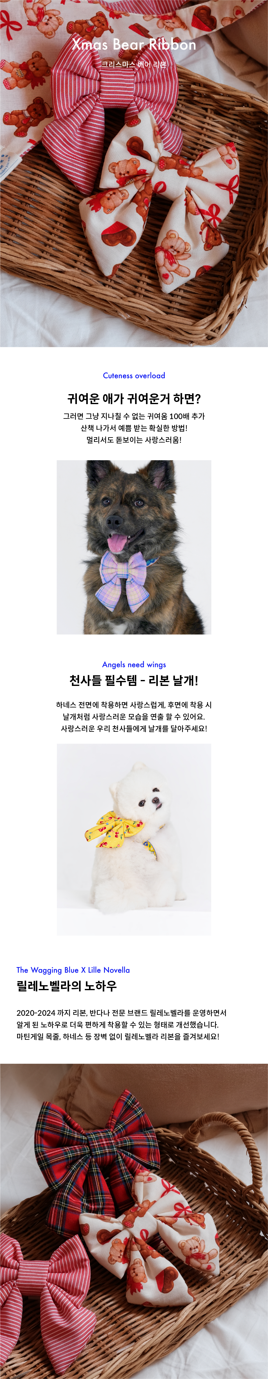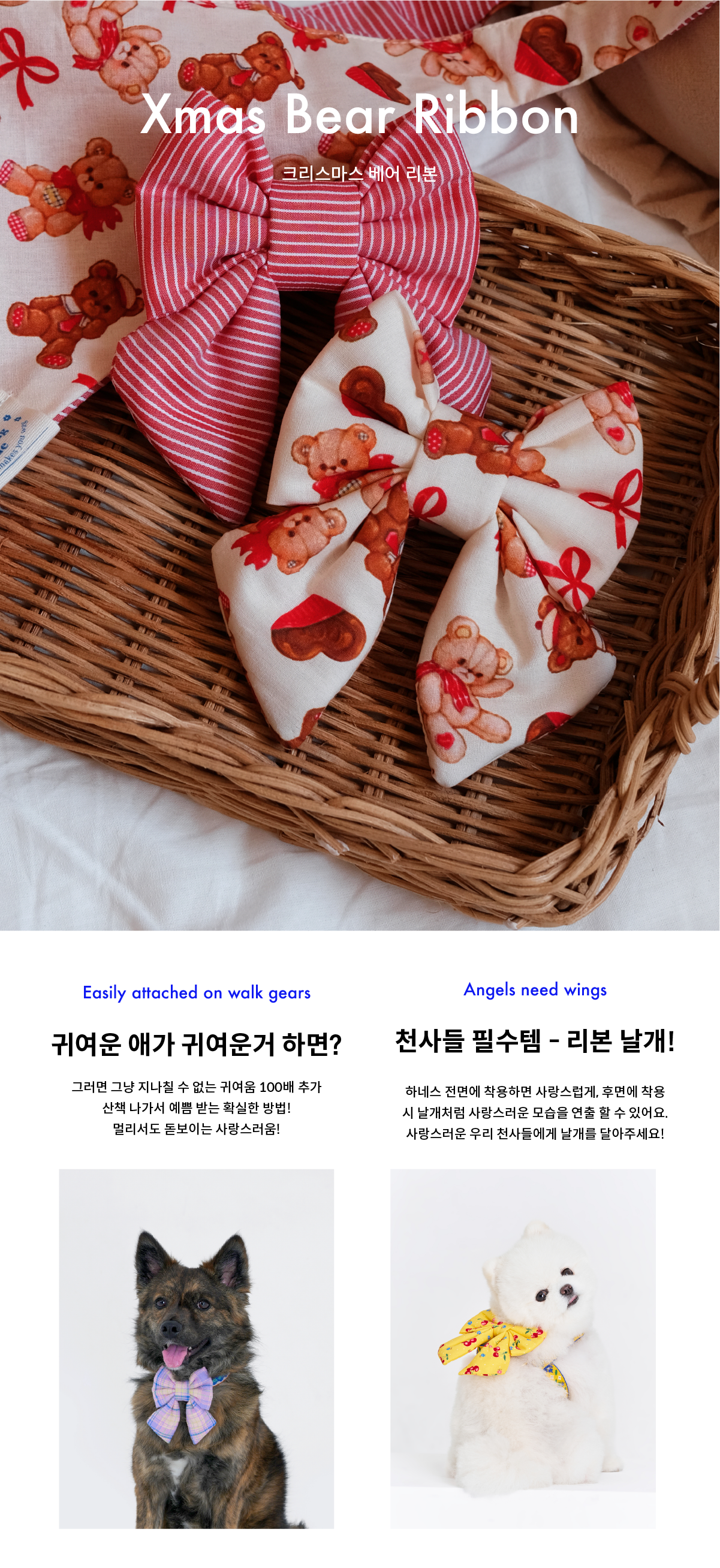 사랑스러운 곰돌이와 리본이 그려져 있는 할리데이 리본